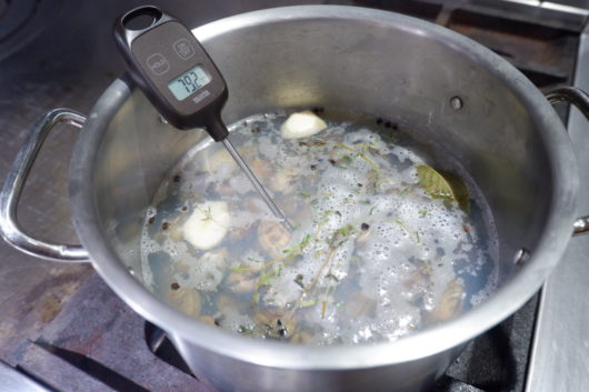 ③温度を計り、80℃ぐらいまで上がったら火を止める。
